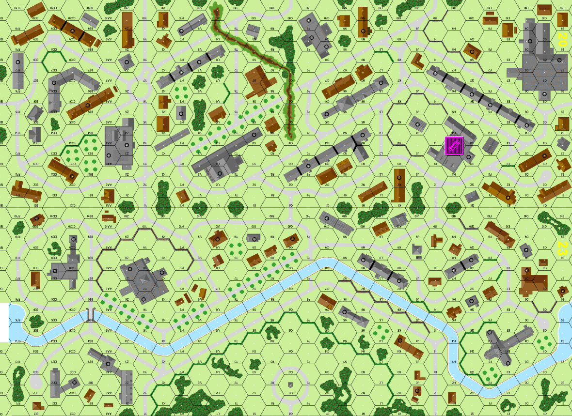 | Misc Rules: | Road AFV MP rates doubled. One bridge. D: limited movement. |