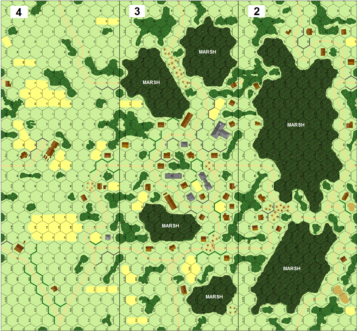 | In SSR 1, building 3N1 now has a ground level only. The 7.5cm PaK 97/38 can't be eliminated by a BAZ CH. Delete two 4-3-6 squads from the German OB. Replace the 7-0 with a 9-2 in the American OB. Change the American Balance to "Delete one 4-3-6 squad from the German OB.". | J11 |
