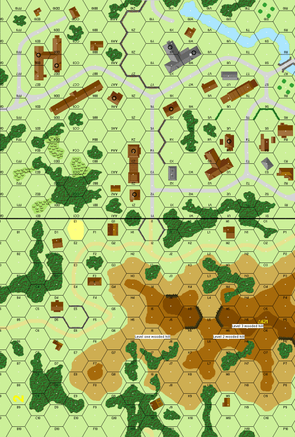 | Misc Rules: | All Hill hexes are Wooded; stream is Flooded. D: No PF capability |