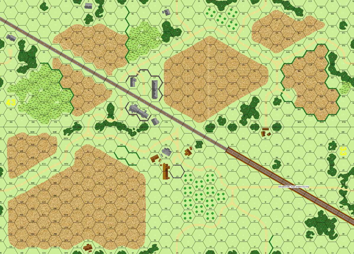 | In SSR 2 replace overlays RR3 & RR4 with RR11 & RR12 (the 6-hex ElRR overlays). [Consider overlapping a hex of the two GLRR overlays (RR1 & RR2) which will keep all of overlay RR1 on board.] | MMP |