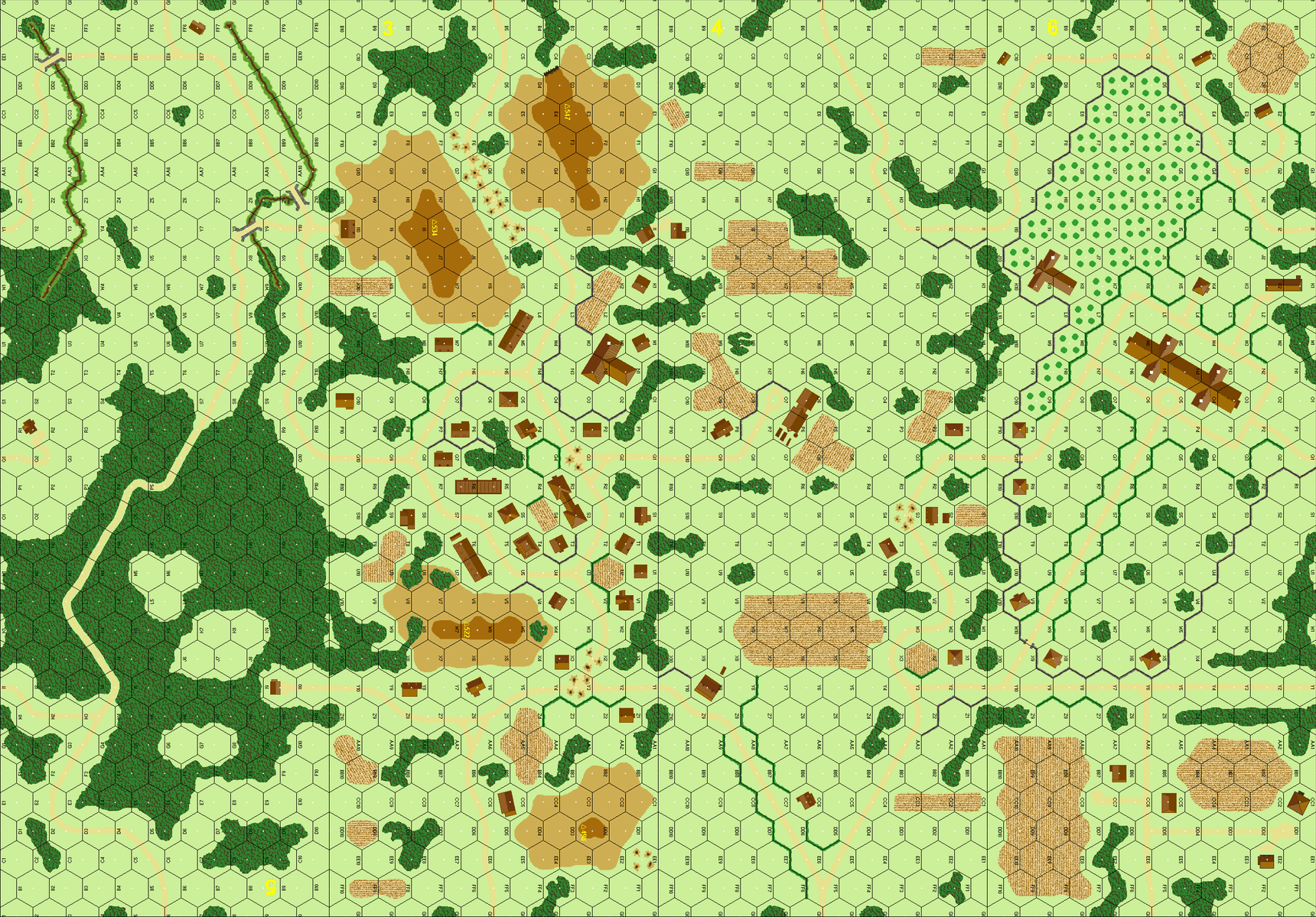 | Misc Rules: | Bldgs: Wooden (Exc: 6N4 is stone). |