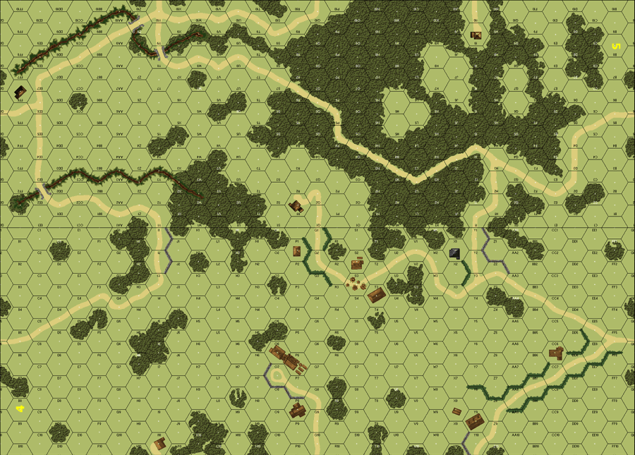 In order to improve the flow of supplies to the German troops driving on Leningrad, the need for the great "Leningrad Highway" became apparent. A key position on the highway was the Soviet strongpoint prepared at Luga. To take the Luga position, the decision was made to drive past the highway behind Luga and take the strongpoint from the north. One of the actions, as the Germans attempted to roll up the Russian defenses covering the highway, was conducted by the 409th Infantry Regiment. The plan called for a crossing of the Oredezh River and the securing of the village of Panikovo. The river crossing was completed with little enemy resistance. Patrols were sent out and returned with reports of no sign of the Russians. At 1500 hours the 1st Battalion moved out toward the village. Soon, the Germans discovered the reason for the silence. A deadly trap had been laid; Russian infantry came rushing out of the woods along with tanks, striking at the exposed flank of the battalion. In an effort to speed its advance through the heavy forest, the battalion commander had neglected to bring along any anti-tank guns. He had little choice but to form a "hedgehog" and await relief.Attacker: Russian (XLI Corps, 11 Soviet Army/Armor Support)