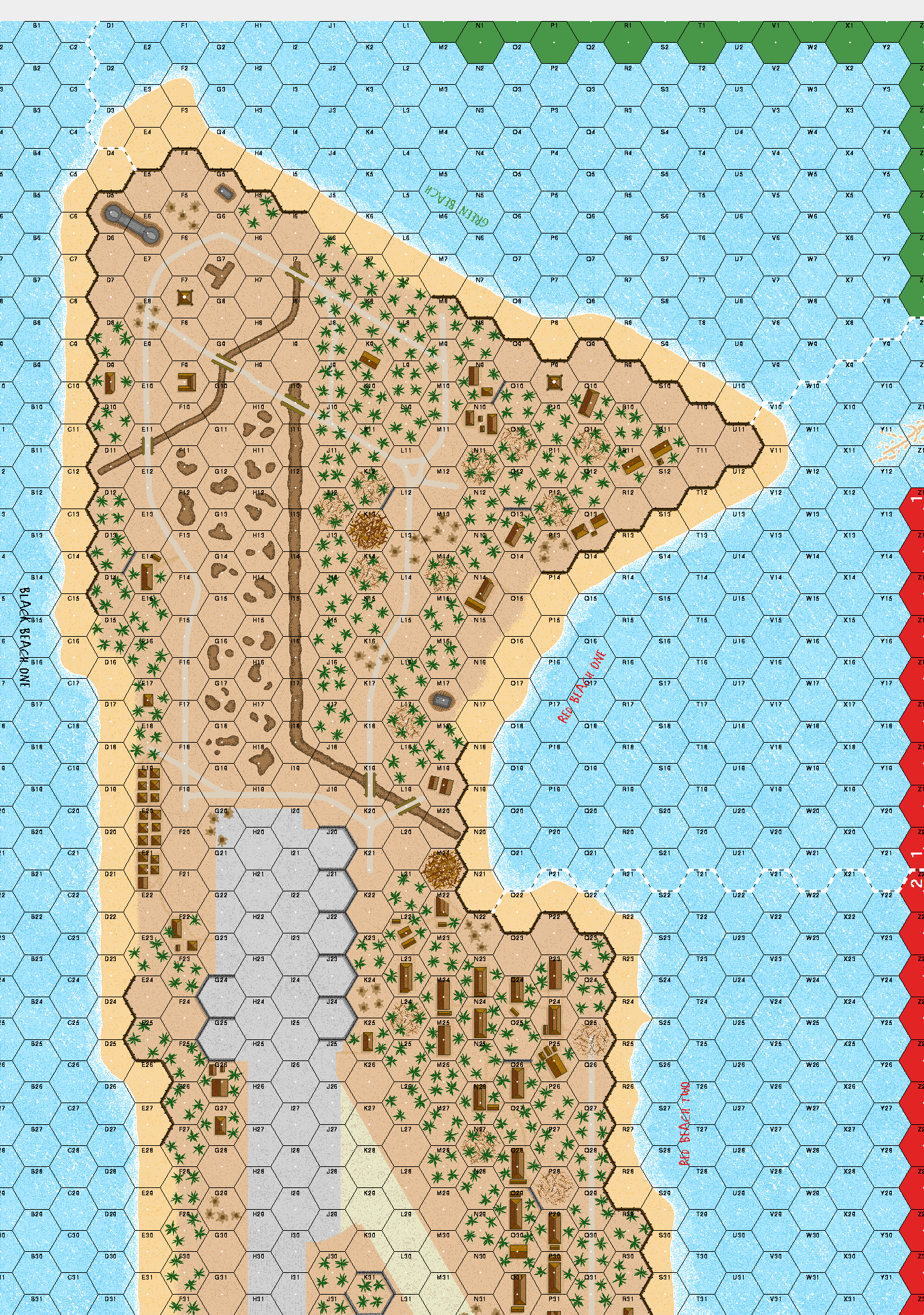 In the pre-dawn light, the first amphibious invasion of a fortified beach began. Marines of 2/2 were slated to hit Red Beach Two, while those of 3/2 were assigned Red Beach One. Colonel Shoup, commander of the Regimental Landing Team, had planned for the first waves to travel in on LVTs. At first the Japanese let the "little boats with wheels" travel unmolested as they concentrated their fire on the larger ships. When the LVTs rammed up against the reef and kept going, the rikusentai realized that the reef would not stop these strange new vehicles. As the Marines reached the beach, overwhelming fire kept them pinned down as the following waves waded in.Attacker: American (USMC) (Regimental Landing Team, Second Marines)