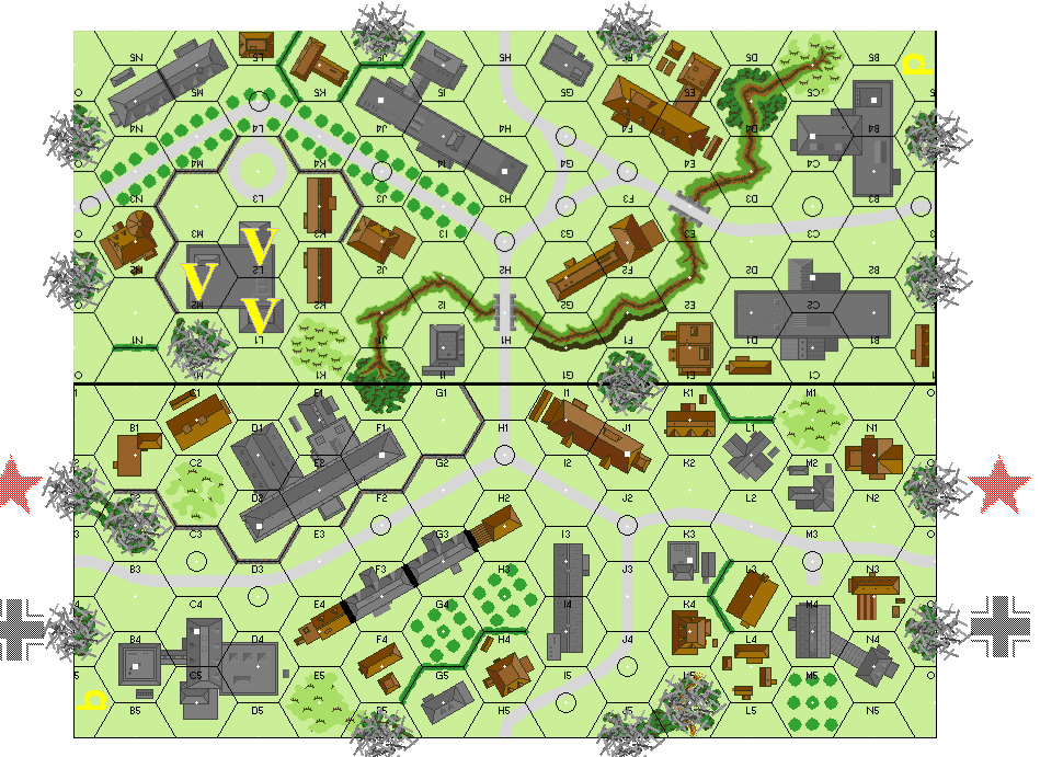 | Misc Rules: | Woods (Exc: those in a gully) are Stone Rubble. D: 2 Sqds HIP set up |