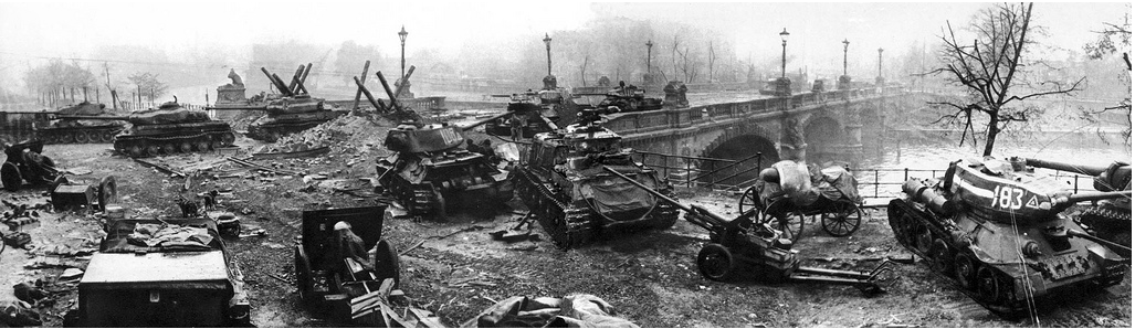 The battle for the center of Berlin, above all for the Reichstag—the final battle—had begun. This blackened ruin was to be the focal point of Soviet attacks for five days, and every formation in the Red Army from Front to regiment was determined to get there first and gain Stalin’s favor. Best situated to reach the building was Kuznetsov’s 3rd Shock Army, but it was blocked by the Spree, here about 80 feet wide with granite-faced banks. Most of the bridges had been blown, but the Moltke Bridge, covered by antitank obstacles and what was left of Germany’s remaining armor and artillery, still remained. To seize it, two assault groups supported by self-propelled guns were deployed. At dusk on the 28th, they launched their attack behind a major bombardment.Attacker: Russian (Reinforced 1st Battalion, 756th Rifle Regiment)