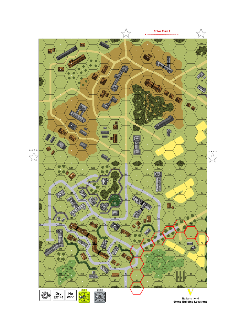 While the Axis forces slowly fell back towards Messina, the Big Red One kept up the pressure through the difficult terrain of central Sicily. The opposing Italians were fighting on native soil now, but their leadership hadn’t improved. As Gruppo Schreiber prepared for a combined-arms counterattack into Alimena, elements of the 26th Regimental Combat Team moved in ahead of them.Attacker: American (2nd Battalion, 26th Regimental Combat Team)