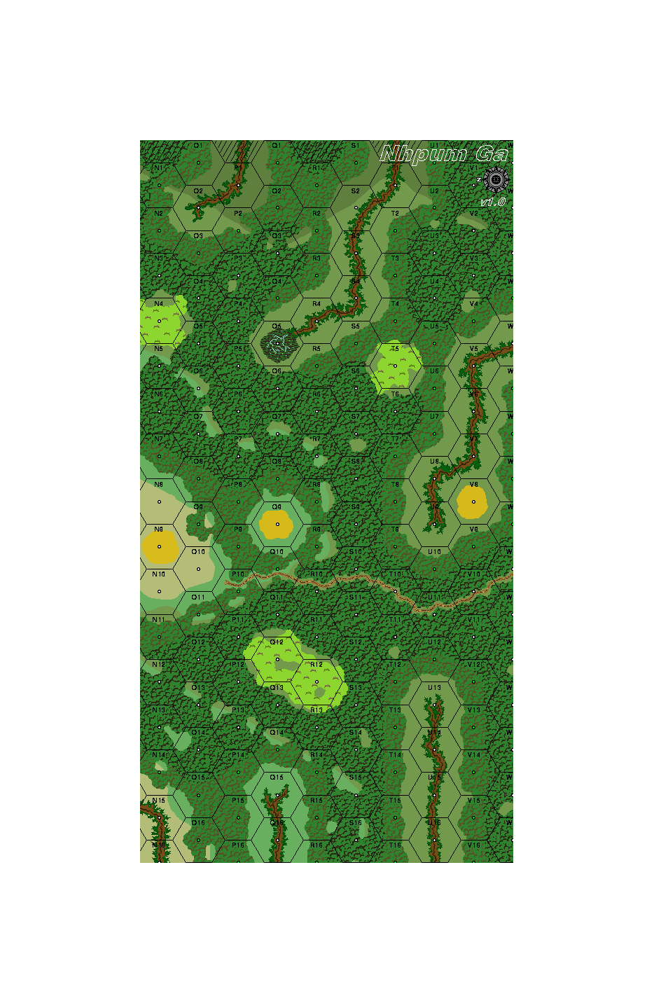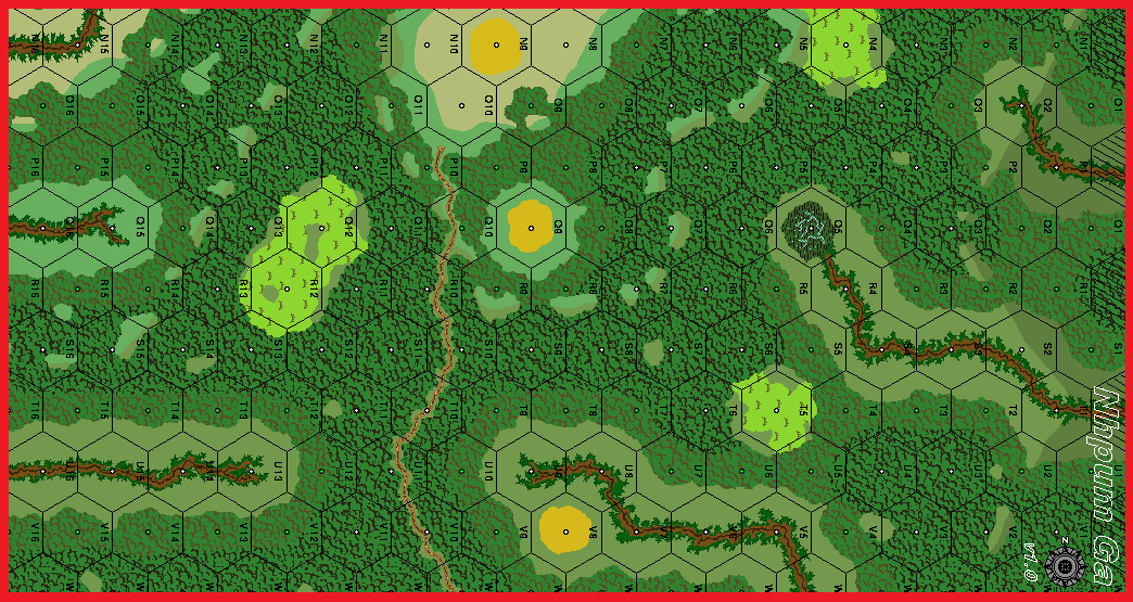 | SSR1: All Interior Jungle hexes are Dense, but in most cases, however, the "oversized colored center dot" in a Jungle hex designates Light Jungle [EXC: hexes U9-U11]. | MMP |