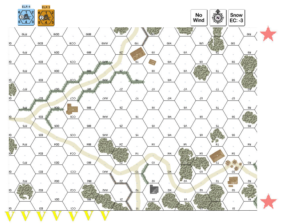| Misc Rules: | DS (E3.73), EW (E3.74), Roads buried. A: WC (E3.712) D: Pz IVE is dug-in. |