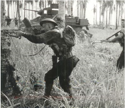 General MacArthur, furious at the perceived inability of his commanders to crack the Japanese fortified positions surrounding Buna, relieved his top field commanders and placed General Eichelberger in command. MacArthur’s last words to Eichelberger were, “Capture Buna or don’t come back alive!” General Wooten, the Australian Area Commander, was awaiting fresh troops from the AIF 18th Brigade and armor support from Milne Bay before resuming the attack on January 1st. Eichelberger, in an attempt at grabbing the glory, threw two companies at the Japanese. They almost immediately stalled and were unable to support the Australian attack scheduled for the next morning.Attacker: Australian (2/9th Battalion, AIF 18th Brigade)