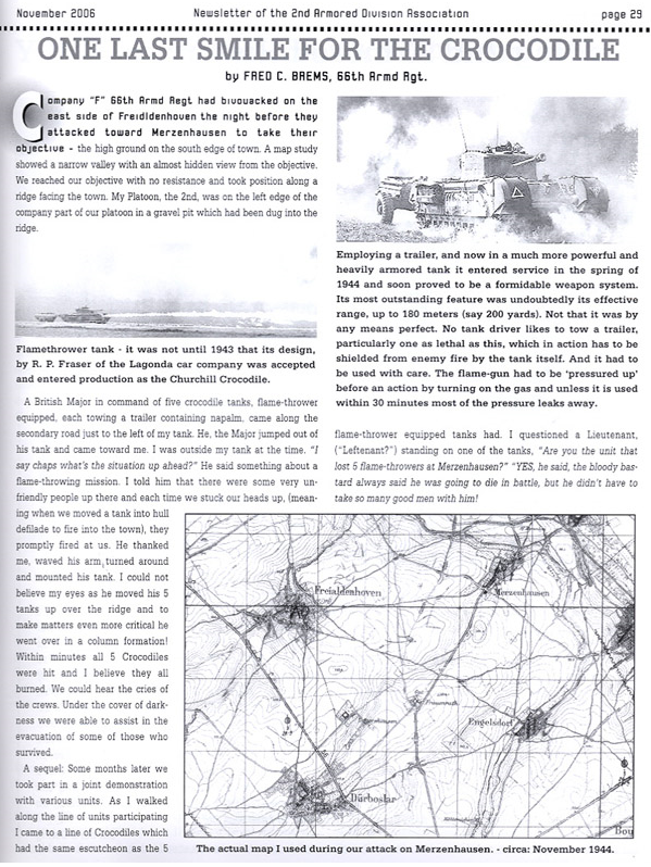 After six days of fighting, XIX Corps believed they were ready for a quick push to the Roer. Merzenhausen was the key to the enemy’s defenses west of the Roer River. The 246th Volksgrenadier Division was undergoing a relief in place. TF 1/66 with Crocs attacked before the relief occurred and ran into elements of the 246th Volksgrenadier Division and LXXXI Corps.Attacker: American / British (1/66 Armored, 1/119th Infantry, 30th Infantry Division and Squadron B, Fife and Forfar Yeomanry)