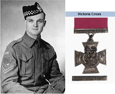 Ran forward alone to a tank, took up exposed position by its turret and directed fire, then ordered tank to ram a farm building. Went in alone, killed several defenders and took rest prisoners. Shot by a sniper when reporting back to superior officers.
