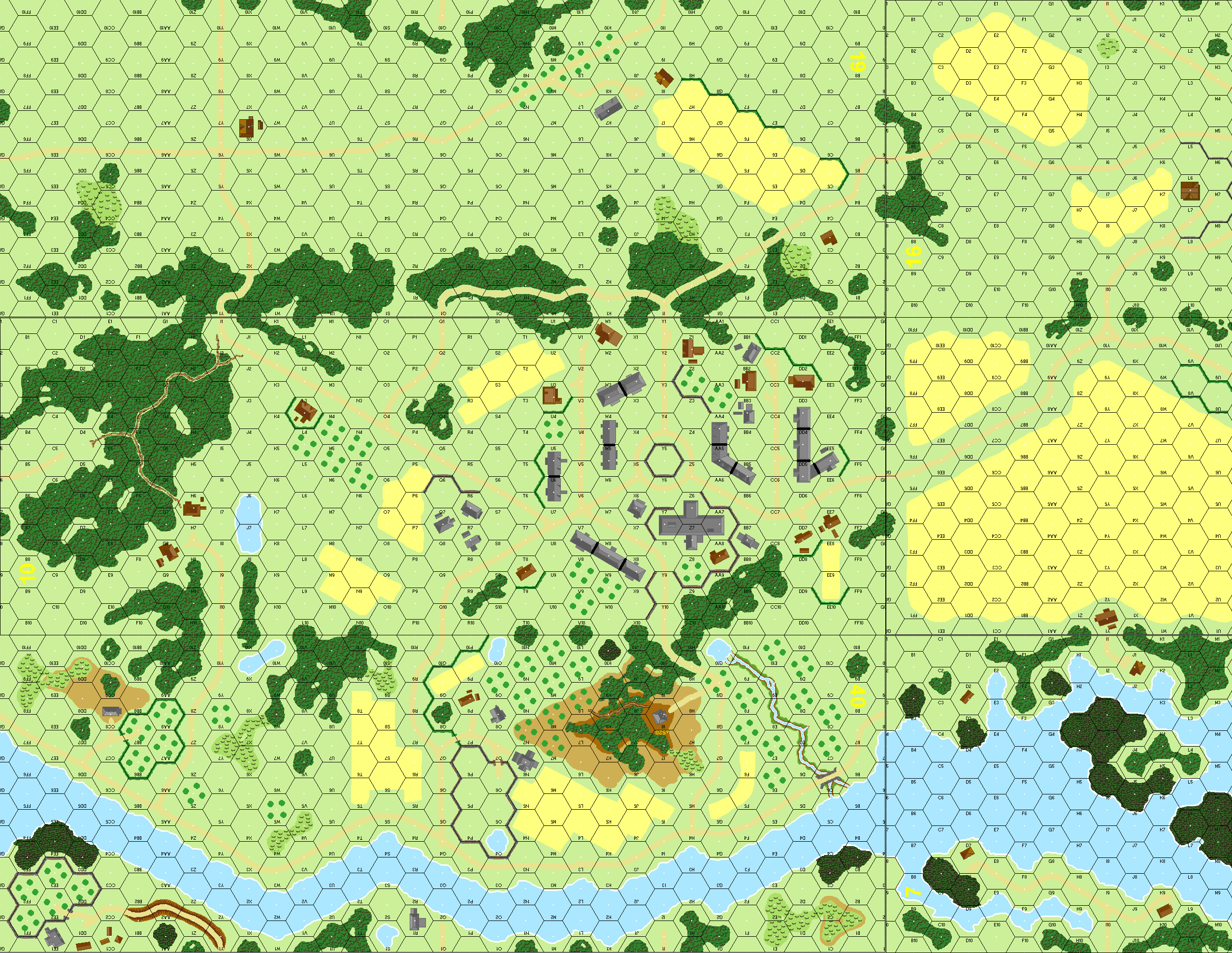 | Misc Rules: | No Hills or Elevated Rd. Pontoon bridge 40Q2-Q3. Ford 40I2-I3 |