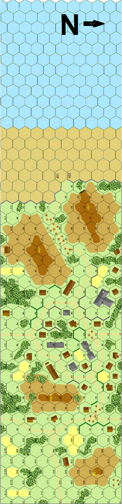 | The direction arrow is currently pointing toward the EAST edge. North is toward the top of the page. This will fix the US being able to enter right next to the beach on Turn 1. | CH3 |