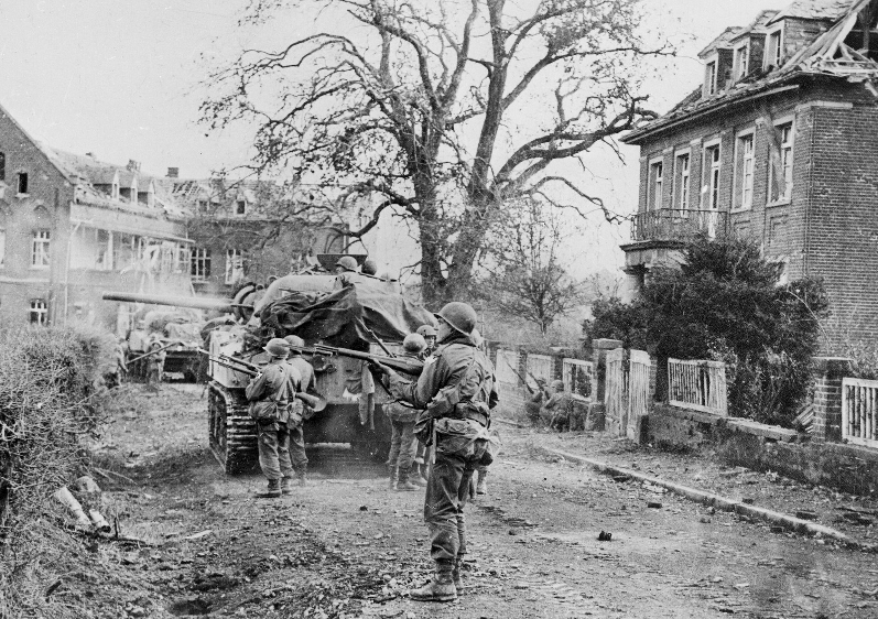 Railsplitters in Geilenkirchen supported by British M4 (84th inf geilenkirchen brit M4 support.png)Imagehoxson11355
