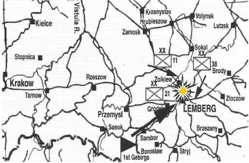 The city of Lemberg was reached with little resistance whereupon the fighting soon bogged down in urban combat. The Germans received word of three enemy formations heading straight for their sector. Determined to halt the flow of enemy reinforcements, the 1st Gebirgsdivision organized several company-sized battle-groups and sent them on wide flanking maneuevers to hold likely enemy approaches. But the Poles were after these same farms, hamlets and crossroads. The 2nd Jäger Company, having made the furthest advance of the day, found itself pinned down by enemy small-arms fire and called for armored car support.Attacker: German (Elements of the 2nd Jäger Company, 1st Gebirgsjäger Division)