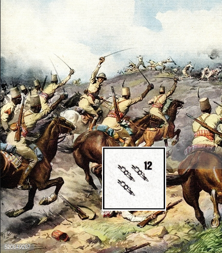 Following their entrance into the war in East Africa, one of the initial objectives of the Italian Army was Kassala, the capital of the Sudan. On July 4th, the Italians launched their main effort. At 0815 the advance guard, which had reached Monte Mocram Pass, came under heavy fire and was forced to dismount. The Italians were convinced that the Indian soldiers were only putting up such fierce resistance to buy time until reinforcements could arrive. The Italian command decided to storm Kassala, no matter the cost. The Italian squadrons charged at their enemies at a gallop, shouting their ancient battle-cry, Savoia!Attacker: Italian (Cavalleria Coloniale)