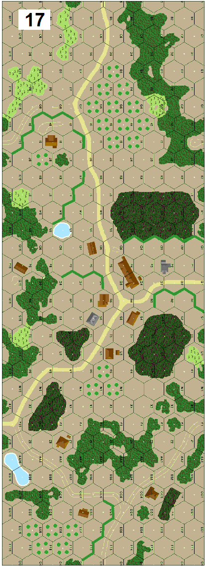 | Misc Rules: | Grain is Marsh. Mud (Roads Q1/Y10 and A6/R4 are NOT Open Ground when moving on road). Bocage |