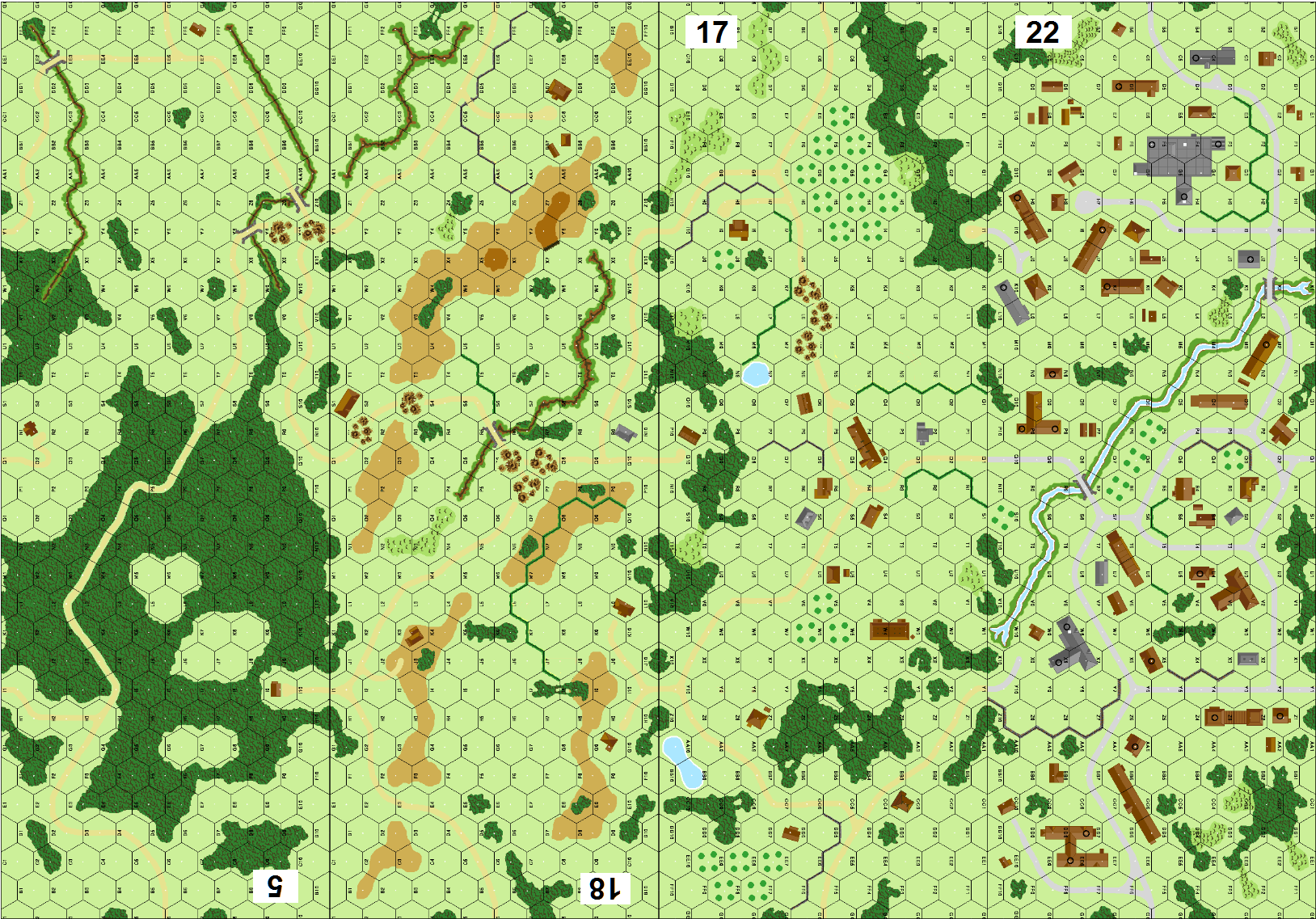 | Misc Rules: | Muddy. Multi-hex bldgs have inherent stairwell in each hex. |