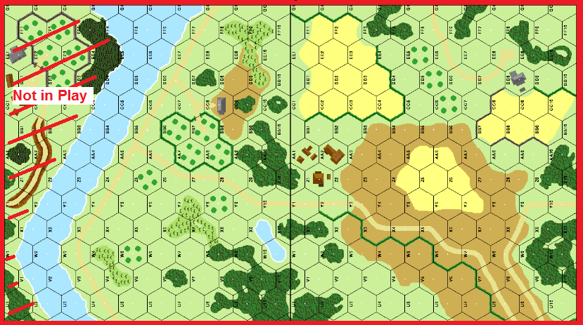 | Misc Rules: | Hexes west of River not in play. All melees are resolved at Game end. A: may initiate H-t-H |