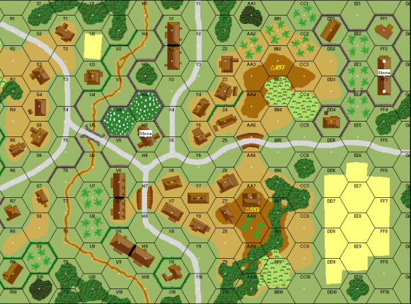 | Misc Rules: | PTO (G.1), LJ (G2.1) Exc: All roads exist and are paved. Bldgs: Wooden, Stream: Gully.. |