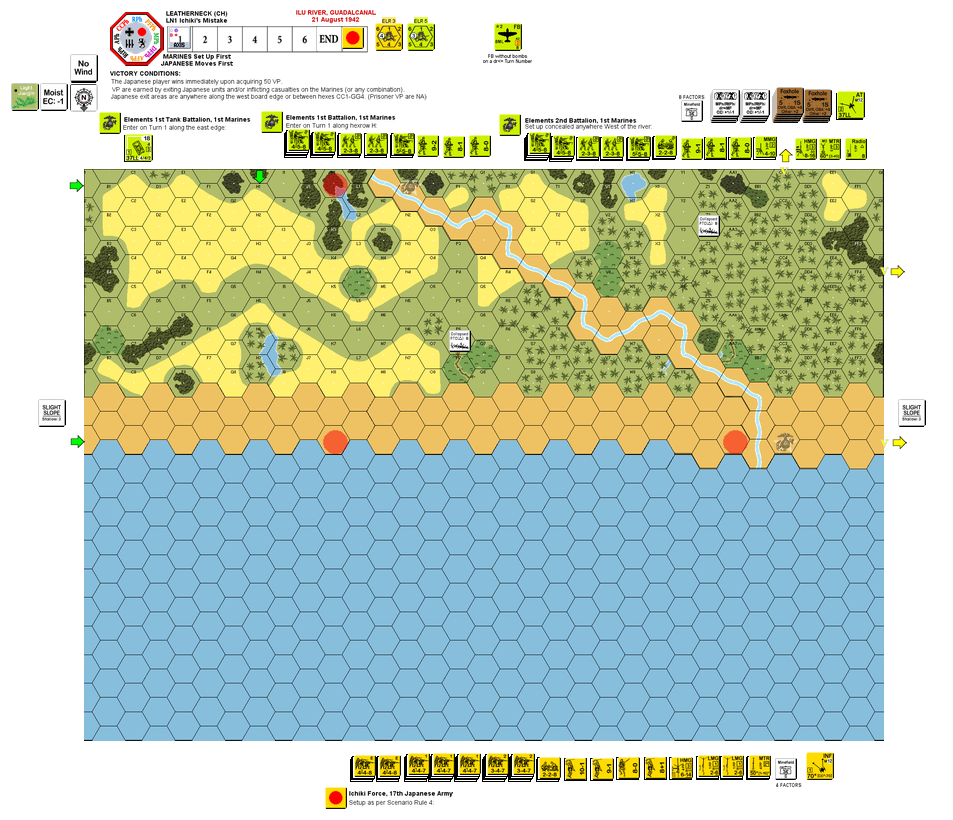 Outside of one skirmish on the Matanikau River, the Marines of the 1st Marines Division had not seen a Japanese soldier since the occupation of Lunga Point. Using this time to strengthen defenses, the Marines nevertheless kept patrols out beyond the perimeter to the east and west. On August 19, a Marine patrol ambushed a Japanese patrol and recovered documents giving amphibious landing orders. This was ll the proof the Marines needed to prepare the eastern approach defenses for an attack. The Japanese Army troops that landed at Taivu Point on August 18 were known as the Ichiki Force. This force of 933 men was the first echelon of the 2nd Battalion, 28th Infantry and was reinforced by artillery, heavy weapons and engineers. After his recon patrol was detected and killed, Colonel Ichiki decided to attack without waiting for his second echelon.Attacker: Japanese (Ichiki Force, 17th Japanese Army)