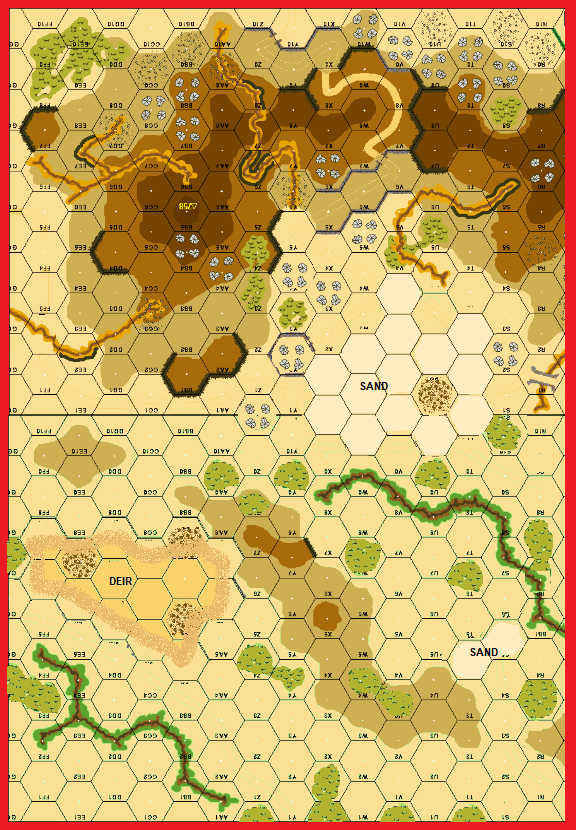 | Misc Rules: | Light Dust, treat Woods as Brush, Brush has +1 TEM. w A: FTV1, Tankdozer w D: Caves3 |