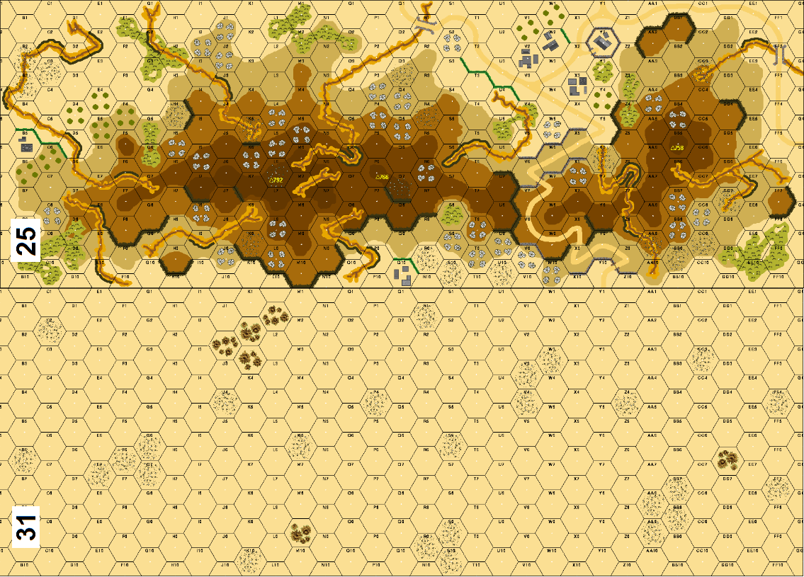 | Misc Rules: | DLV (F11.6) thru Turn 3. Hammada: Shellholes, Bldgs: Stone. A: M3s have Gyros (D11.1) |