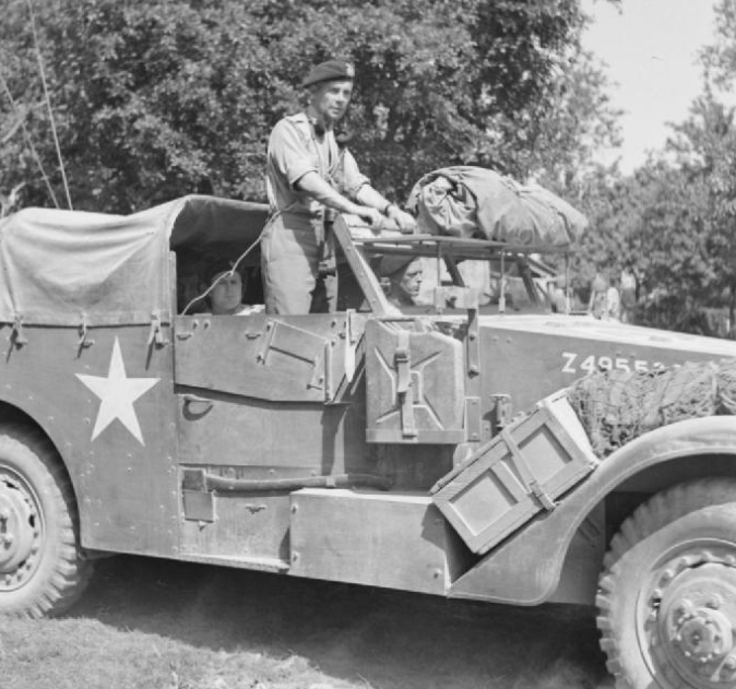 Major-General 'Pip' Roberts, commanding 11th Armoured Division, in his White scout car.