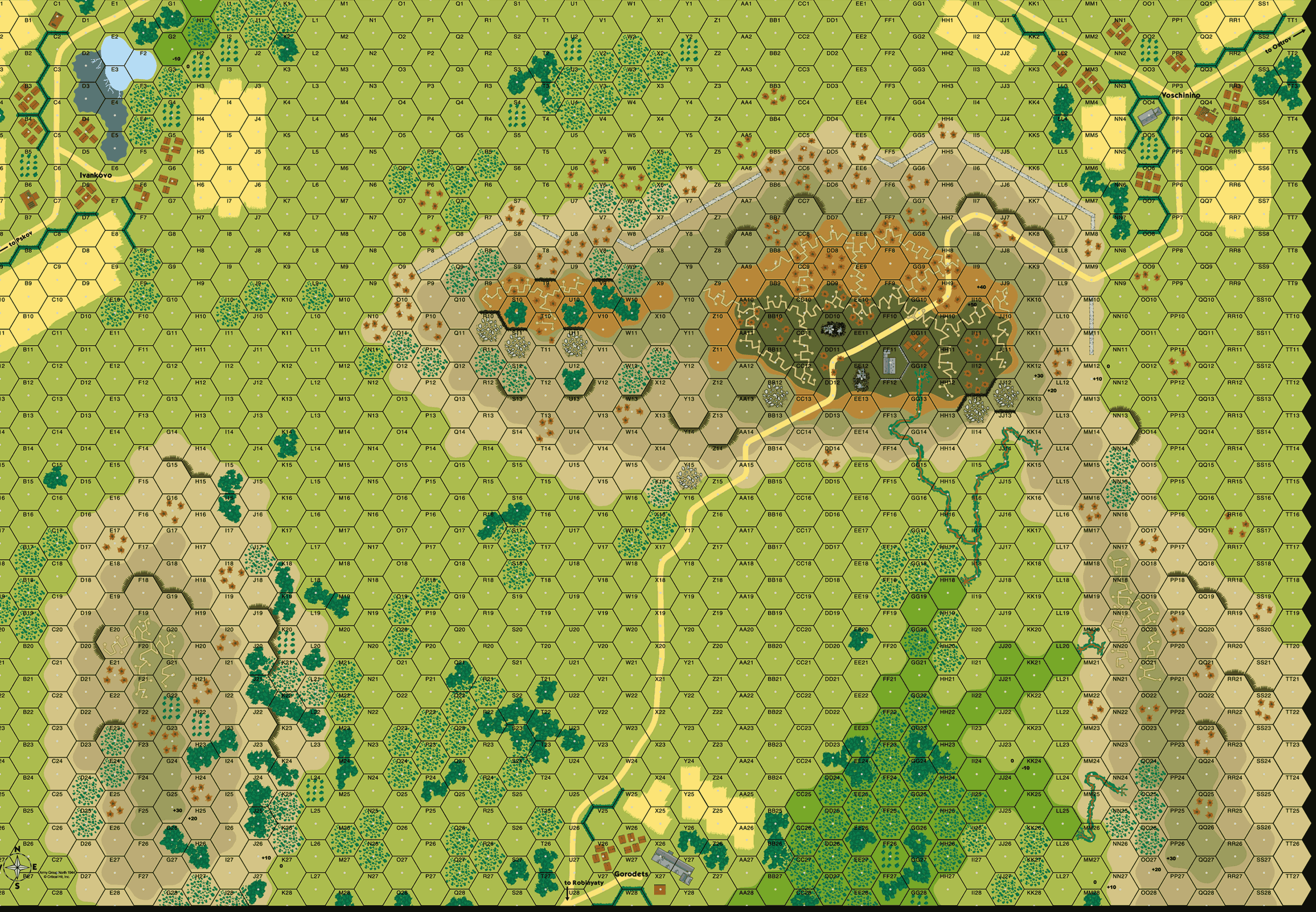 In the 121st Infantry Division’s sector, the 1st Shock Army’s attack created a 2-kilometer hole in the lines at the Sujewo Heights – the key ‘Balcony’ position that had seen so much fighting during the Russian spring offensive. The Russians were now advancing towards the Pskov-Ostrov road, a loss that would compromise the Panther Line and sever its connection with Army Group Center. To prevent this, the 502nd Heavy Panzer Battalion, equipped with 21 PzKfw VI ‘Tiger’ tanks, was rushed to the front. The Panzer-soldiers quickly coordinated a counter-attack with infantry and assault engineers.Attacker: German (Elements of 1st Battalion, 405th Regiment and 121st Pioneer Battalion and 2nd Company, 502nd Heavy Panzer Battalion)