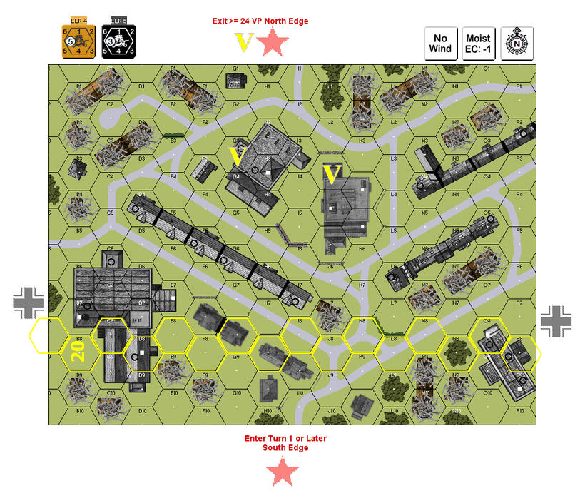 | Misc Rules: | Wooden buildings are stone rubble, Sewer movement (Germans) H-t-H combat. |