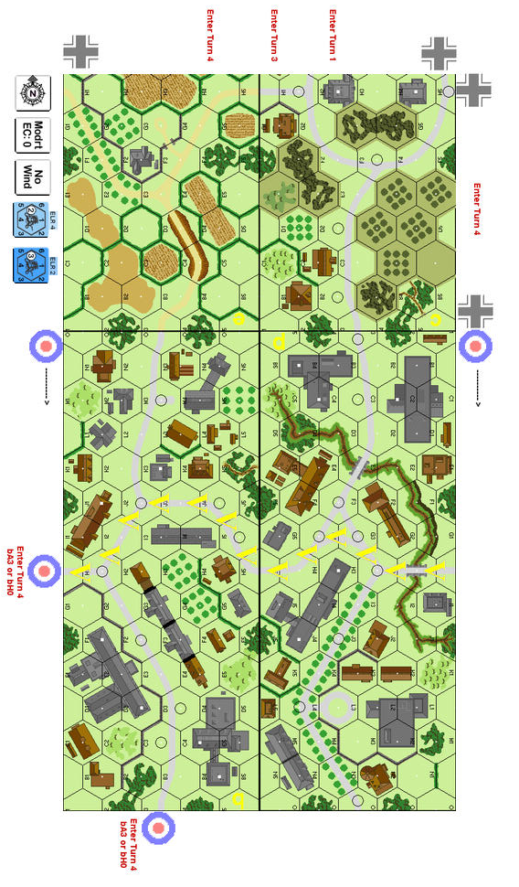 | Misc Rules: | Ov6, all multi-hex buildings are Stone. A: AEs w D: H39s HIP as if Guns |