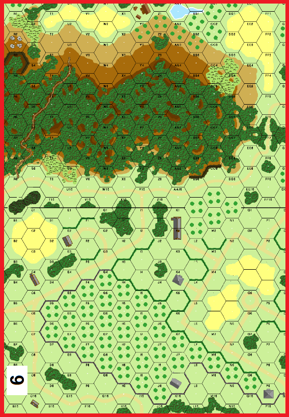 | Misc Rules: | Bldgs: Stone, Hedges and Walls: Bocage (B9.5). Hill Woods are two-level obstacles, cost 4MP |