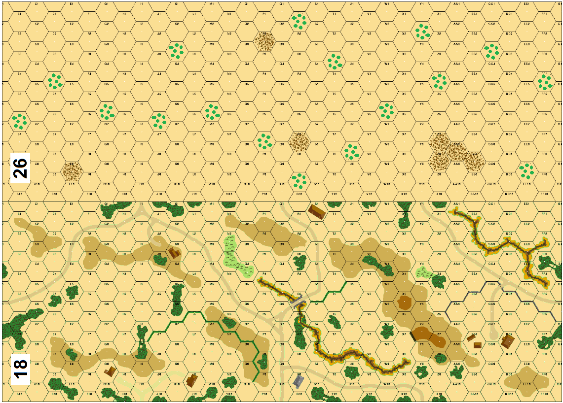 | Misc Rules: | Wet EC, Treat Scrub as Candelabra Trees, Grain is OG, Hedges are Thorn Zeriba (3MF+COT). D: Guns AS |
