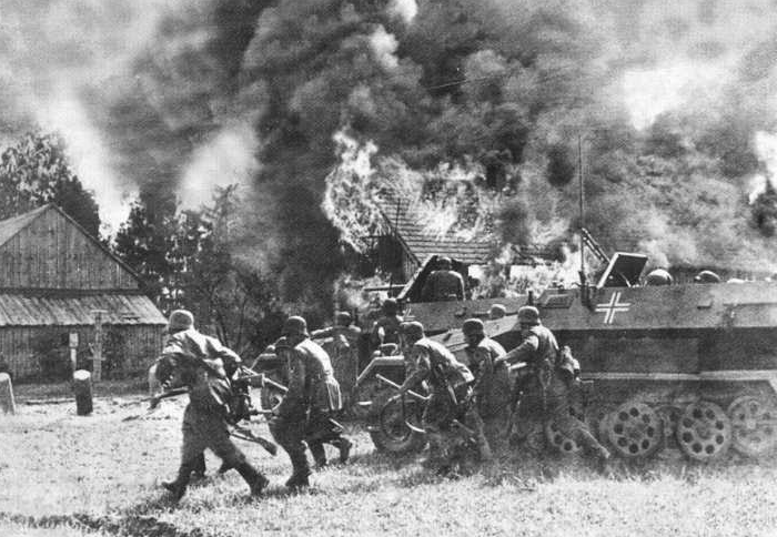 | By early 1941, Hungary, Romania and Bulgaria had joined the Axis, and German troops overran Yugoslavia and Greece that April. (germ spw buring bldgs.png) | Image | hoxson1 | 1405 |