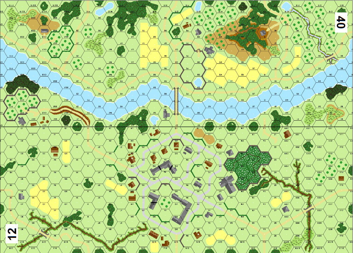 | Misc Rules: | No armored car may enter a stream hex. Treat Marketplace as regular building. |