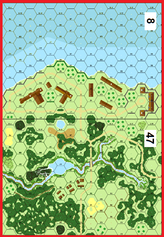 | Misc Rules: | No north shore, no hills or valley on Bd 47. Stream is Deep, wood bldgs |