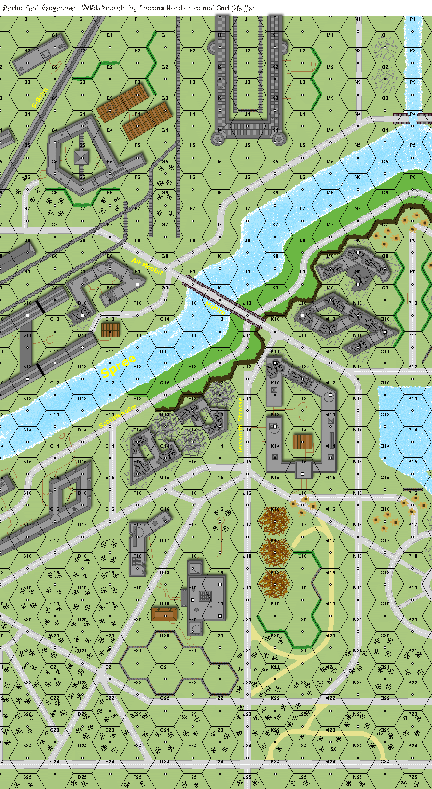 Having crashed over the Moltke Bridge during the evening, the remains of the 150th Guards Division had established a foothold in the buildings at the eastern end of the Diplomatic Quarter. The SS had fled across the wide expanse of the of the A____ to set up a defensive line in the Western Quarter. The SS garrison reinforced the Ministry of the Interior building. The Russians called it "Himmler's House". The SS soldiers and officers of the State Police would fight to defend it to the last man.Attacker: Russian (674th Rifle Regiment, 150th Rifle Division)