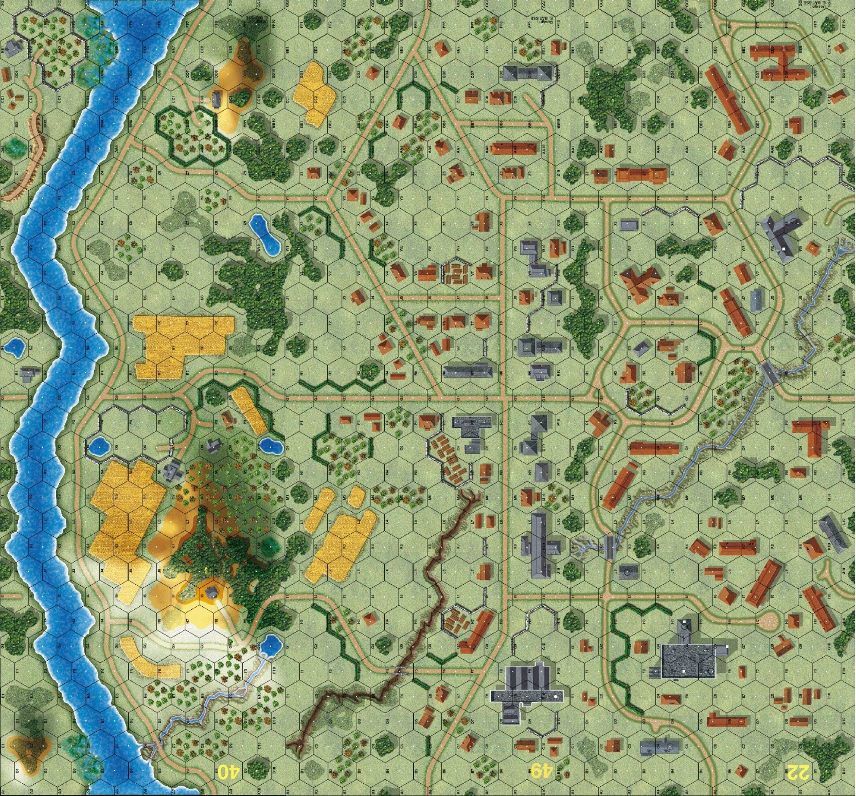 | Misc Rules: | Unpaved roads. D: Cupola (D9.5). Trenches connect adjacent bldgs like Cellars. D: FB4 |