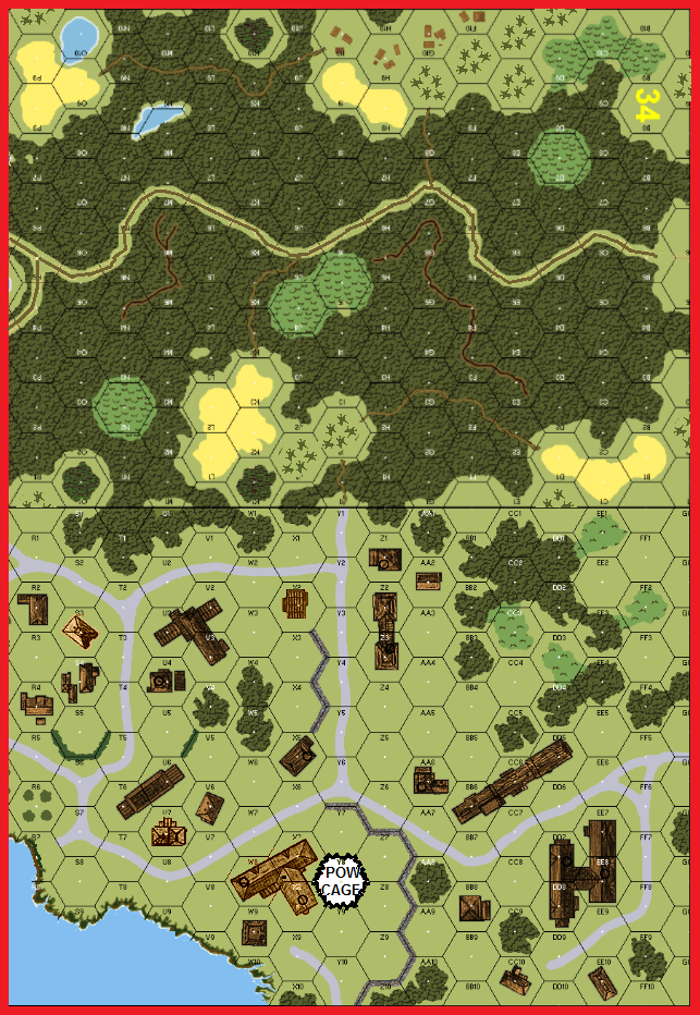 The Japanese, stung by a series of recent losses, strike back desperately at the Allies. As the American and Australian Dock Operating Company rests for the night on the beach and under a half moon, the Japanese lunge from the jungle with DC and Molotov Cocktails...in minutes the Japanese have set fire to several buildings, blown up supply depots, and freed several POWs from a nearby pen...the carnage is just beginning!Attacker: Japanese (371st Battalion, 56thIndependent Mixed Brigade)