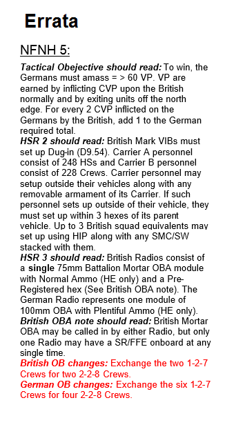 | Misc Rules: | Grain is in Season. D: Mk VIBs set up Dug-In. |