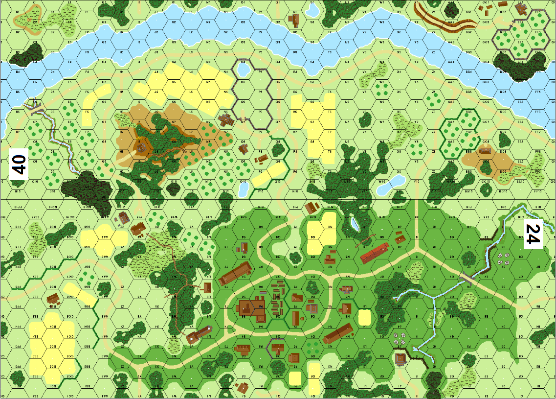 | Misc Rules: | All Bldgs: Wooden, Gullies are Streams. |