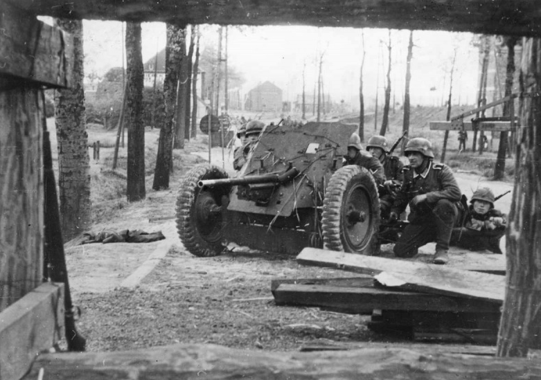 German 37-mm PaK 35/36 on the street of a town in Belgium.