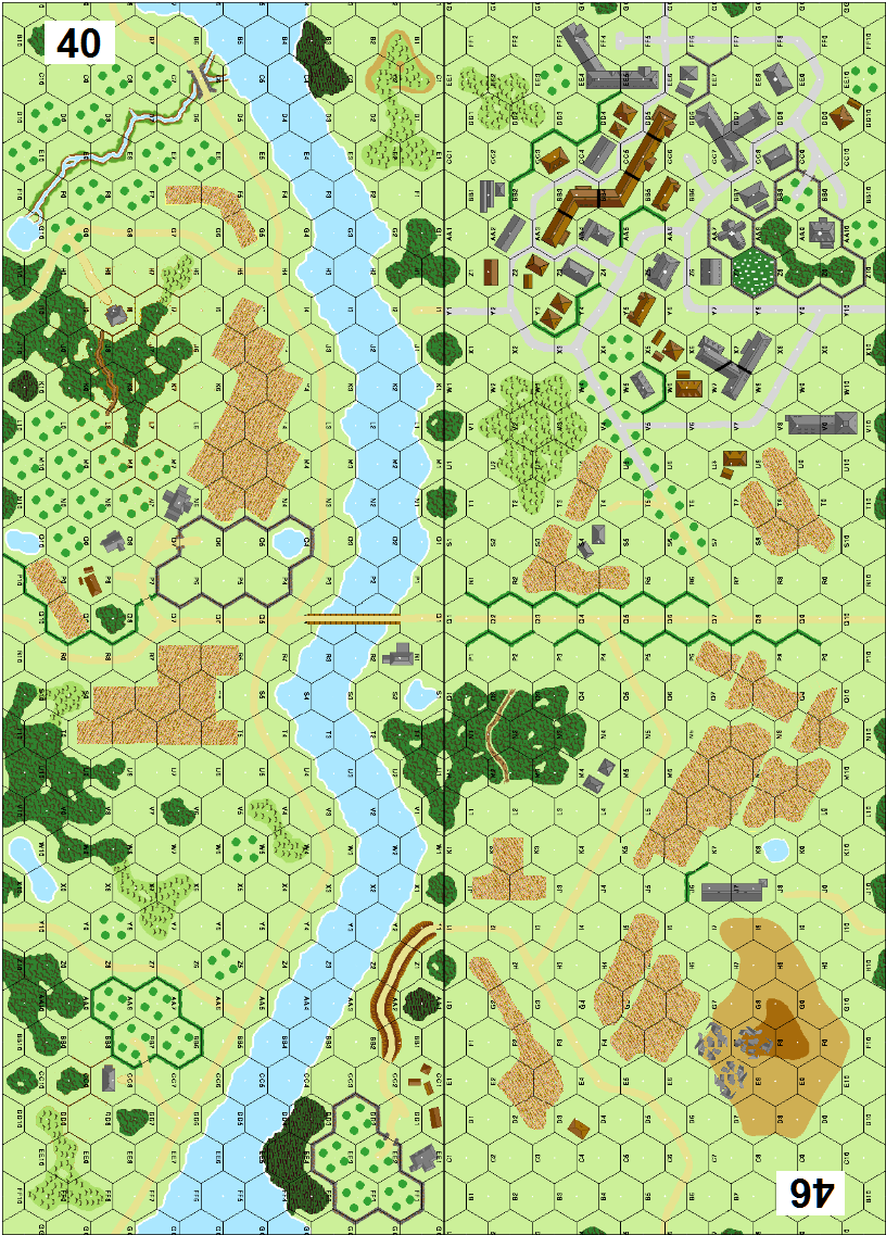 | Misc Rules: | Hills west of River do not exist. A: 4 Footbridge counters to set up |