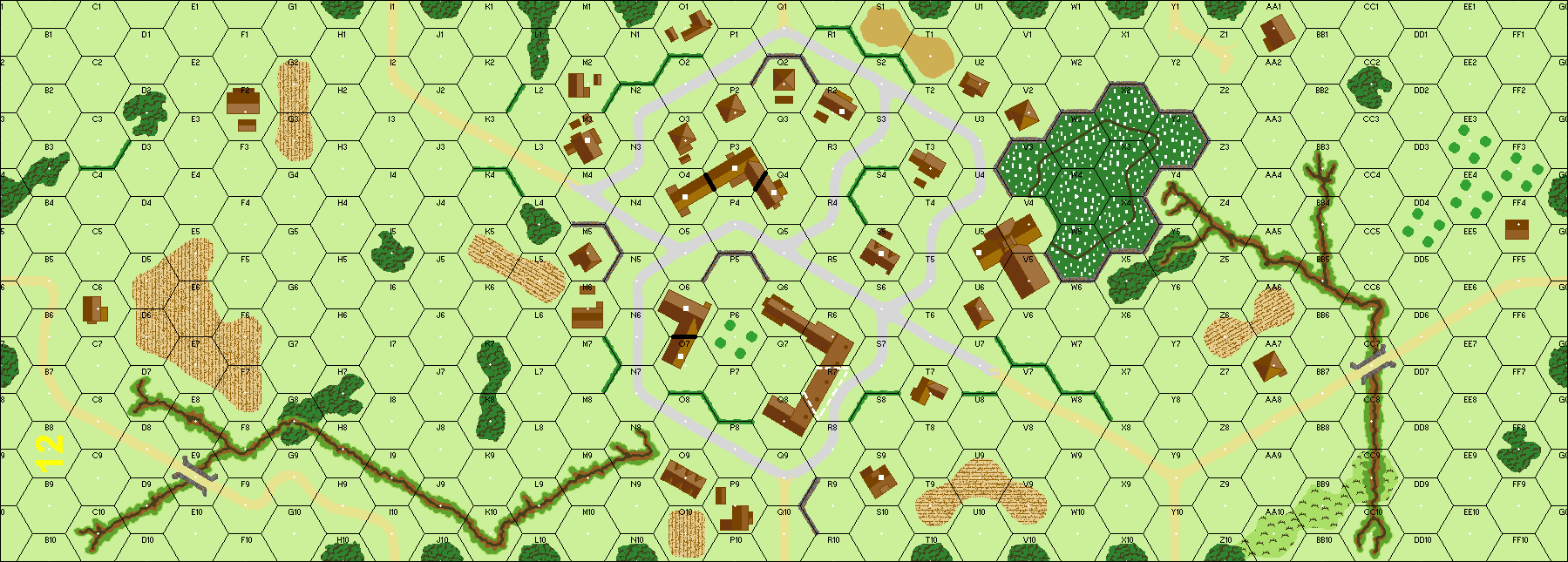 | Misc Rules: | All buildings Wooden, H-t-H Combat. A: SS ELR is 2 w D: 2 Roadblocks |
