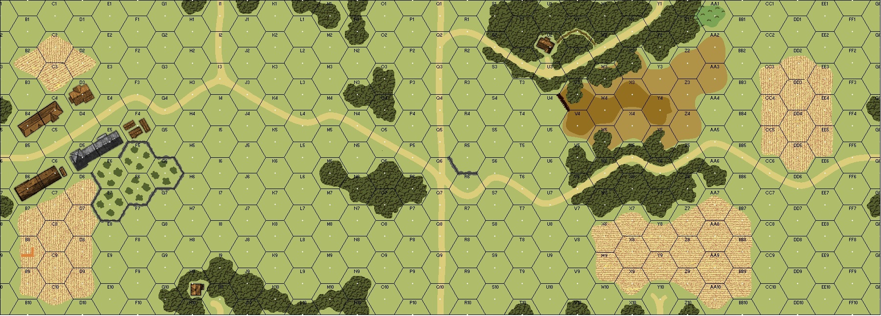 The night before, a mixed group of German infantry, artillery, engineers, auxiliaries, and a transport column had been cut off by an American force holding an important road junction. Colonel Hauk took over command of the remnants and ordered an attack on the crossroad, ostensibly to get the transport and refugees to safety, but really to preserve his personal loot. Under pressure, Lt. Asch agreed to provide artillery support hoping that in the confusion he and his men could escape to their native town and await the end of the war.Attacker: German (Elements of Henrichsen's Battalion, Luschke's "Panther" Division)