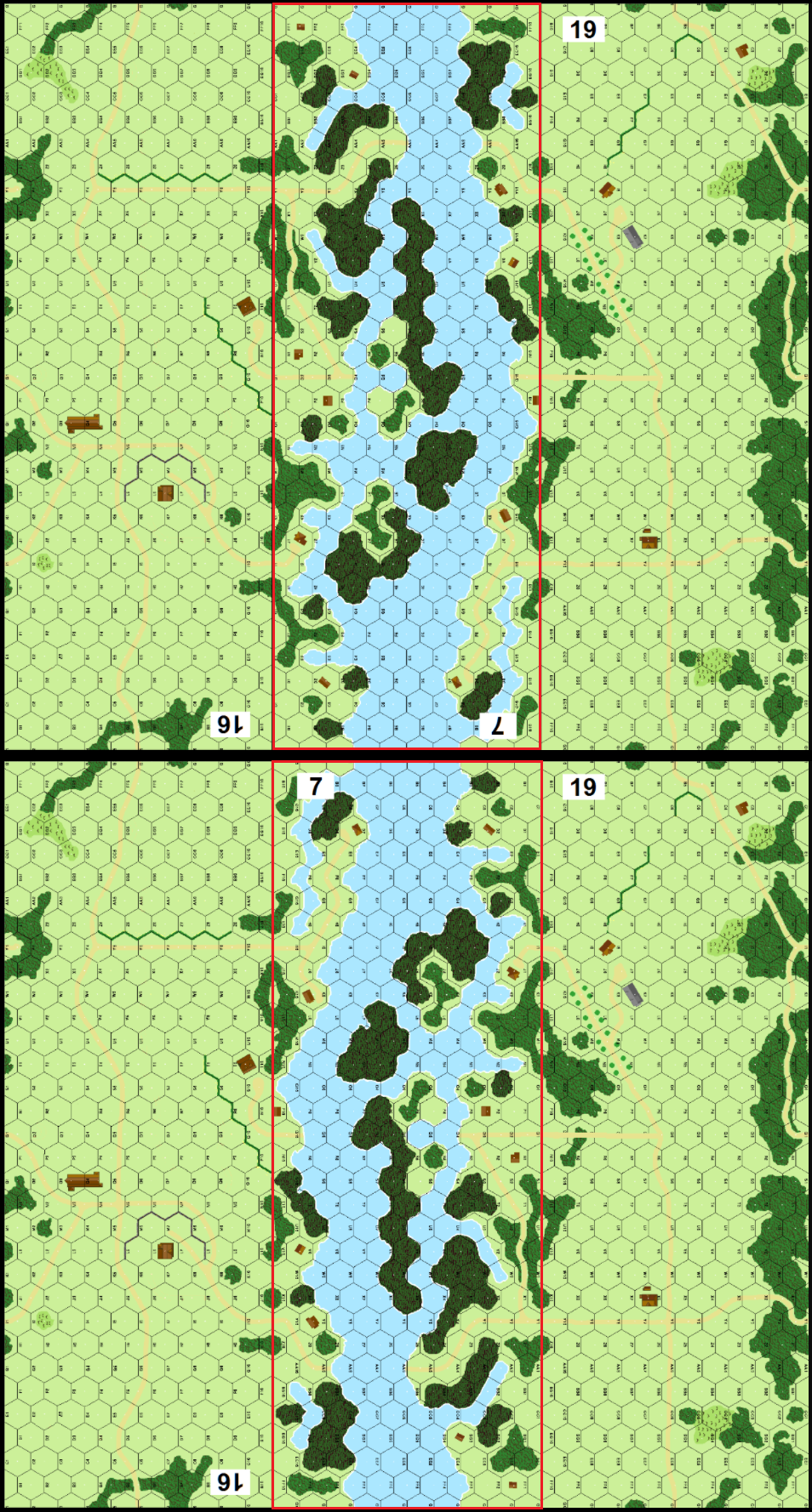 | Misc Rules: | River: Deep, Moderate Current, A: may change orientation of Bd7 and place bridge location |
