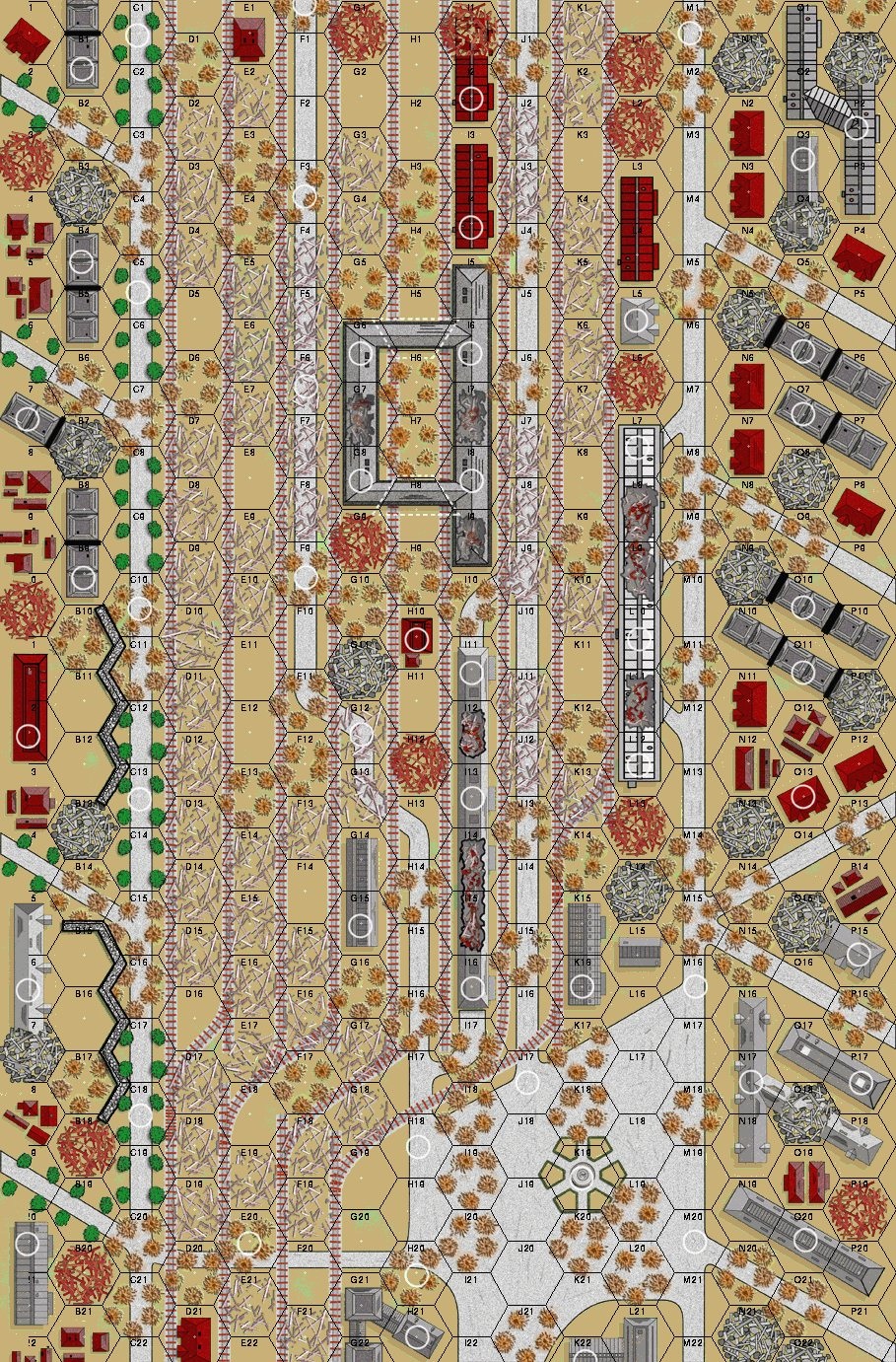 Since the night of the 14th, men of Rodimstev’s 13th Guards Division had been involved in a bitter struggle over control of the station. The fighting raged day and night with the station changing hands four or five times each day. The morning of the 17th dawned with the usual appearance of the Stukas as they bombed and strafed the station, followed closely by an artillery bombardment which buckled the iron girders and blew apart the walls. The defenders barely had time to regain their senses when the German attack began – a large force of tommy-gunners supported by some twenty panzers rolled towards them.Attacker: German (Infanterie Division 71 with Panzer Regiment 24 and StuG Abteilung 244)
