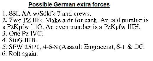 Solitaire scenario - dr determines if KV-1 or KV-2 for Russians; it sets up in row EE. Germans enter from west with dr determining 5 possible options of what else they get beside the starting 3 MMC/37L AT gun. Could be 88L AA gun, could be up to two tanks, etc.Attacker: German (not disclosed)