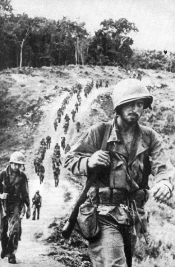 The Second Marine Raiders were in a state of mental and physical exhaustion after almost a month of living off the dense jungles of the island. They had fought a dozen encounters during their mission to intercept the rear of the Japanese lines around Henderson Field. One last battle would be required of them before they returned to their lines. To go over Mt. Austen meant going over the Japanese defenders waiting for them.Attacker: American (USMC) (2nd Raider Battalion)