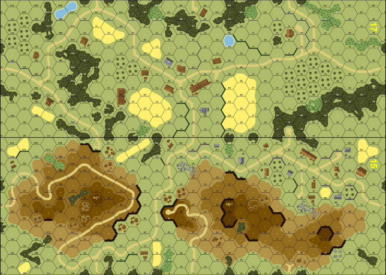| Misc Rules: | Crags are Shellholes. Treat Cliff hexsides as Double Crests |